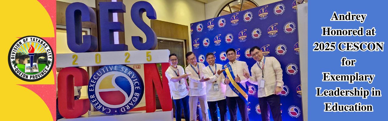 Mikael Sandino T. Andrey, Education Program Supervisor in Araling Panlipunan at SDO Tayabas City, was recognized for his outstanding contributions to public service and educational leadership during the 52nd Founding Anniversary of the Career Executive Service (CES) and the 2025 CES Lifelong Learnin...